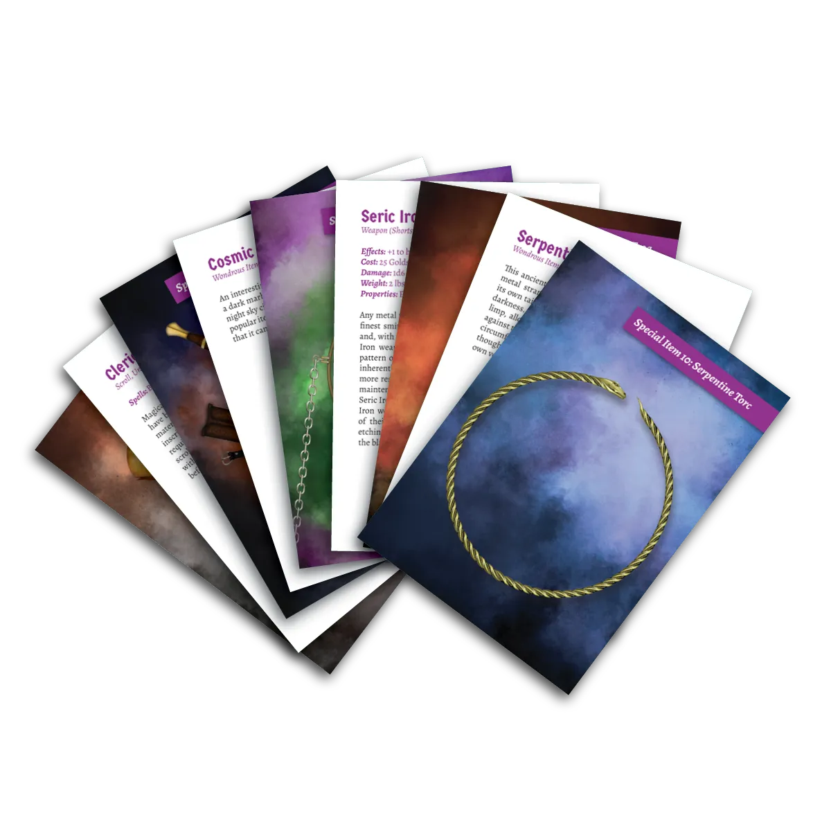 You can never have enough loot. In each of our adventure boxes we include a set of item card handouts for GMs to give players, providing a beautiful illustration, concise description, and full rules for each noteworthy item players might acquire during the chapter. However, there’s always a danger with handouts that they get lost, bent, or covered in snack grime. Alternatively, you may wish to keep a copy of the item cards for yourself, even while your players hold onto them for the duration of the campaign. Or maybe you need another set so you can use your favorite magical swords and potions in a different adventure. Whatever the case, this pack of Special Item cards for Chapter One: The Darkest Dream gives you an extra set of the cards from that chapter.