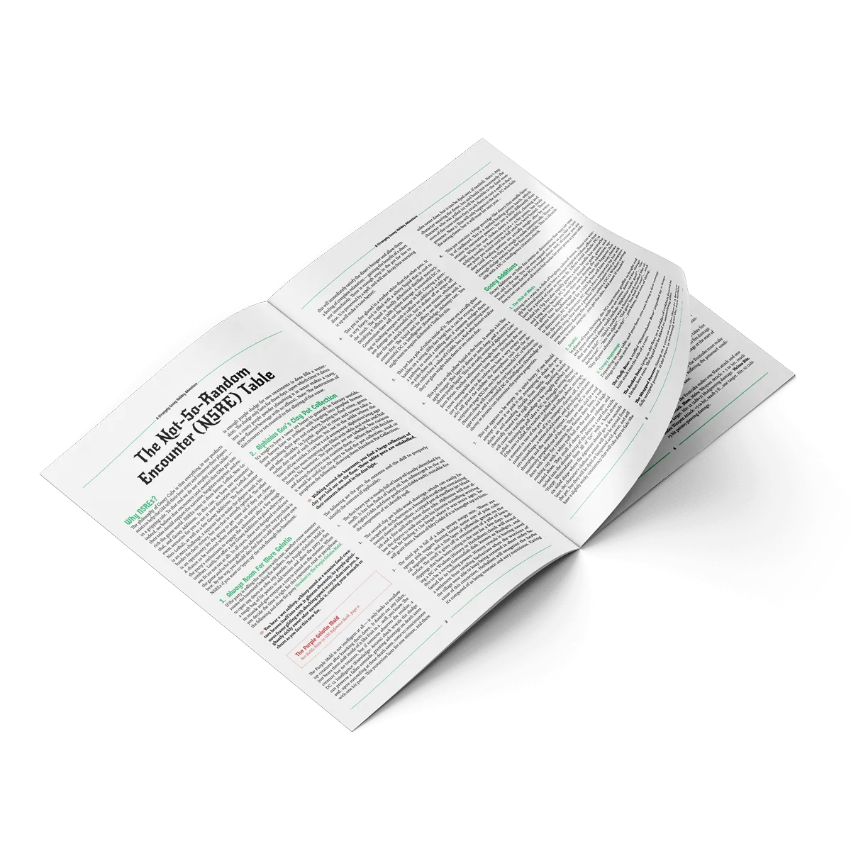 A key component of our easy-to-use design, our GM Reference Book holds all stat blocks and other pertinent information necessary for the main plot. Not only this, but optional encounters, which we call Not-So-Random-Encounters, or NSRE’S, are included. Each one is more than a one-line hook, and make for intriguing, captivating, and occasionally humorous additions to the game.
