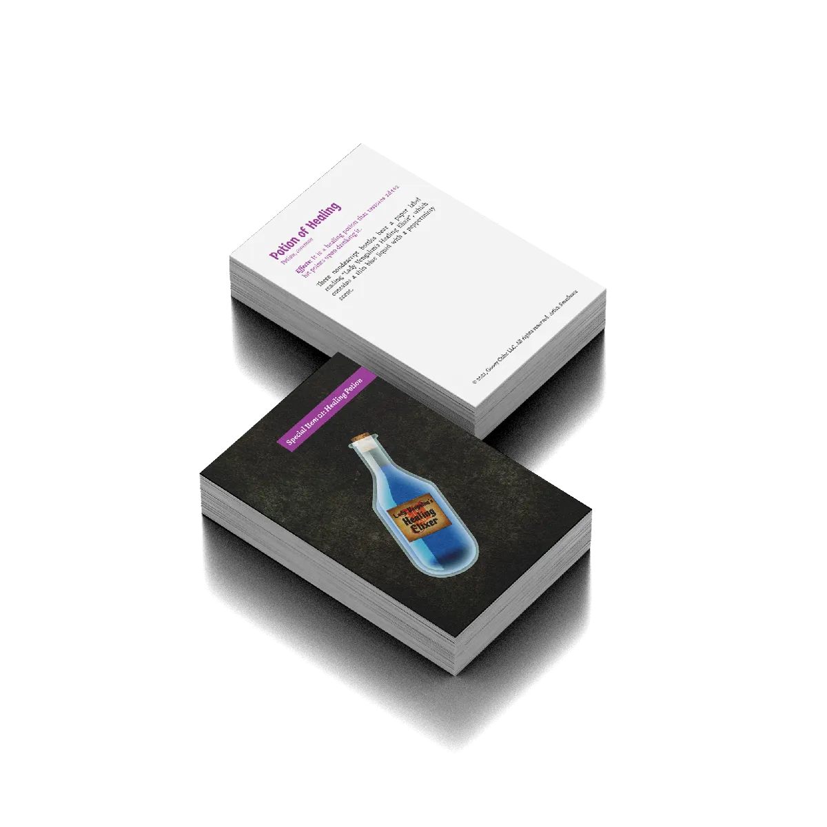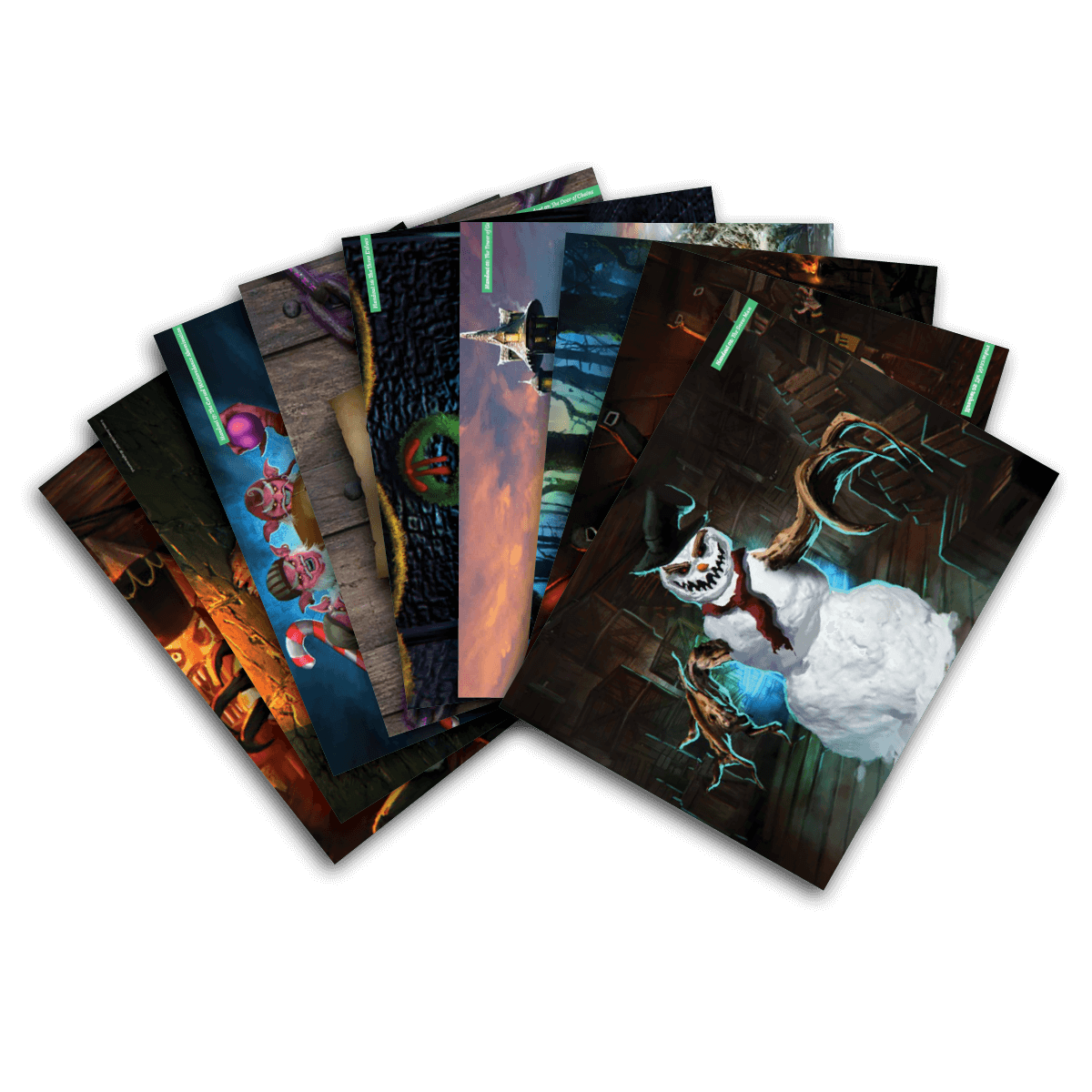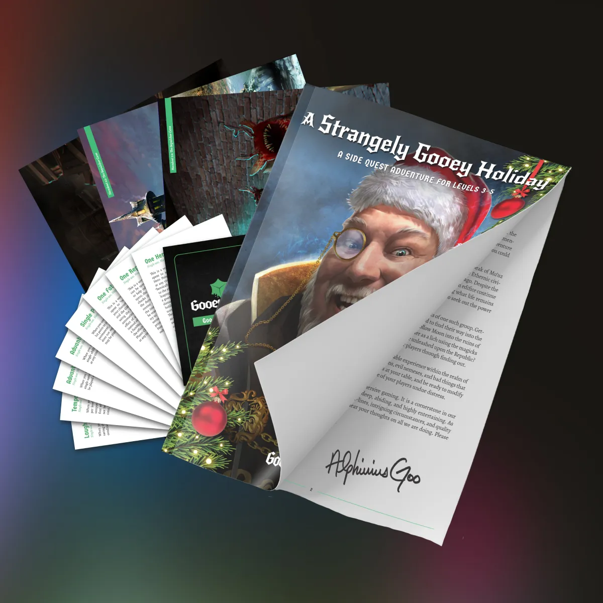 Never worry about a player forgetting what their item does ever again! Every item found as part of A Strangely Gooey Holiday is included as an individual item card. On the front is stunning artwork of the item. On the reverse, a detailed explanation of what the item does. From weapons to armor to scrolls to potions, players can keep these cards and refer to them as needed!