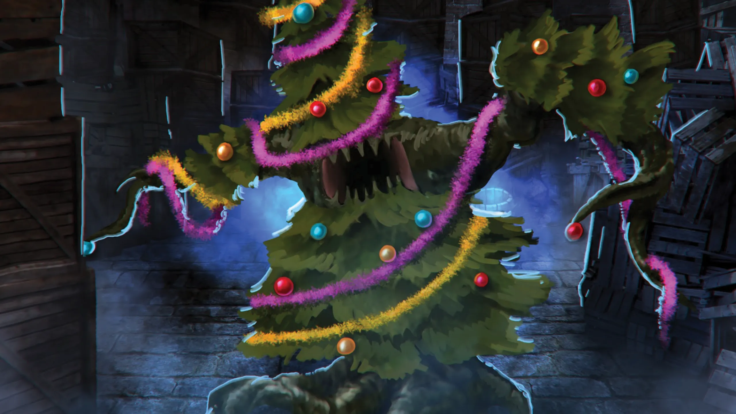 The smell of cookies and nog hangs heavy in the air, and there is a magical glow glistening in the ice crystals that cover the window panes; Wintersdance is but a few short days away! This wondrous celebration is beloved by nearly everyone across Zyathé, and even the household of the esteemed archmage, Alphinius Goo, is caught up in the holiday cheer. Yet the approach of the season each year fills the wizard with as much irritation as mirth. His wife’s favorite decorations were ensorcelled most wickedly many years ago by his rival, forcing Alphinius into a grueling battle to subdue the knicknacks that drain much of the fun of Wintersdance. He’s had enough! Fortunately, a band of adventurers have turned up on his doorstep just in time to retrieve the wanton adornments – but they’d best hurry, as Ms. Goo is on her way home, and expects to find the tower properly decorated!